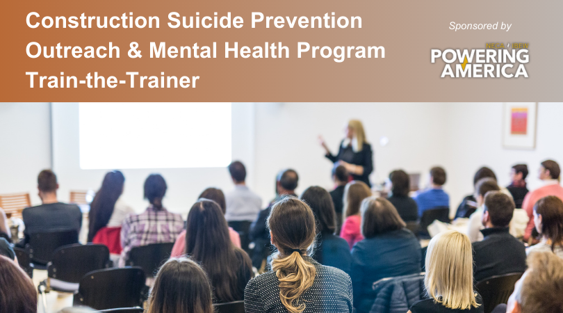 There is a critical need for suicide prevention in the construction industry. This program is offered to assist in the training of employees at all levels of a construction organization. This training creates a forum for dialogue and critical thinking about mental health challenges, and by promotes help-seeking and help-giving behaviors. This preconvention workshop will take place on Friday, September 29 at NECA 2023 Philly. Please note: NECA Convention registration is NOT required to attend this workshop.